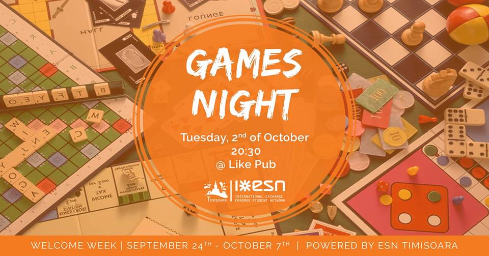 ESN Timișoara happily invites you to take part at a Games Night made especially for you!