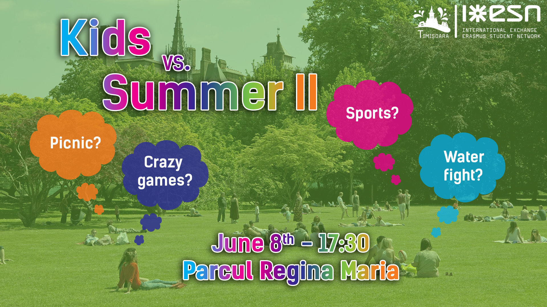 For that, #ESNtimisoara continues the series of summer events with the second round of picnics and invites you to be kids again and join us for another epic moment: Kids vs Summer: Round II.
