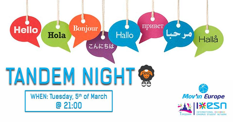 Join ESN Timisoara for another Tandem Night, where smiles, quality time and international environment are guaranteed.