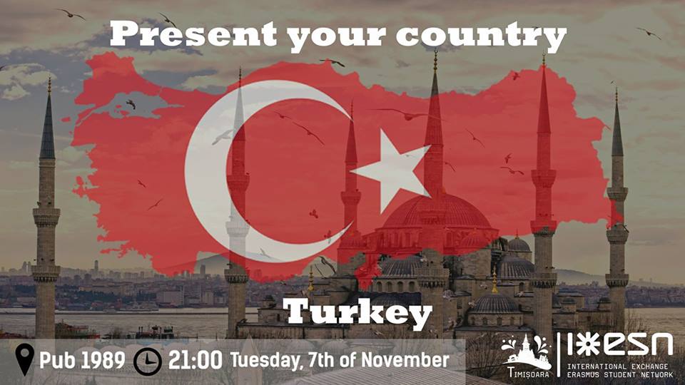 Living in a multicultural environment as Erasmus student it's one of the best gifts of the Erasmus life. Our event "Present your country" goes on and this time Turkey will show us the wonders of Turkish food, culture and monuments.