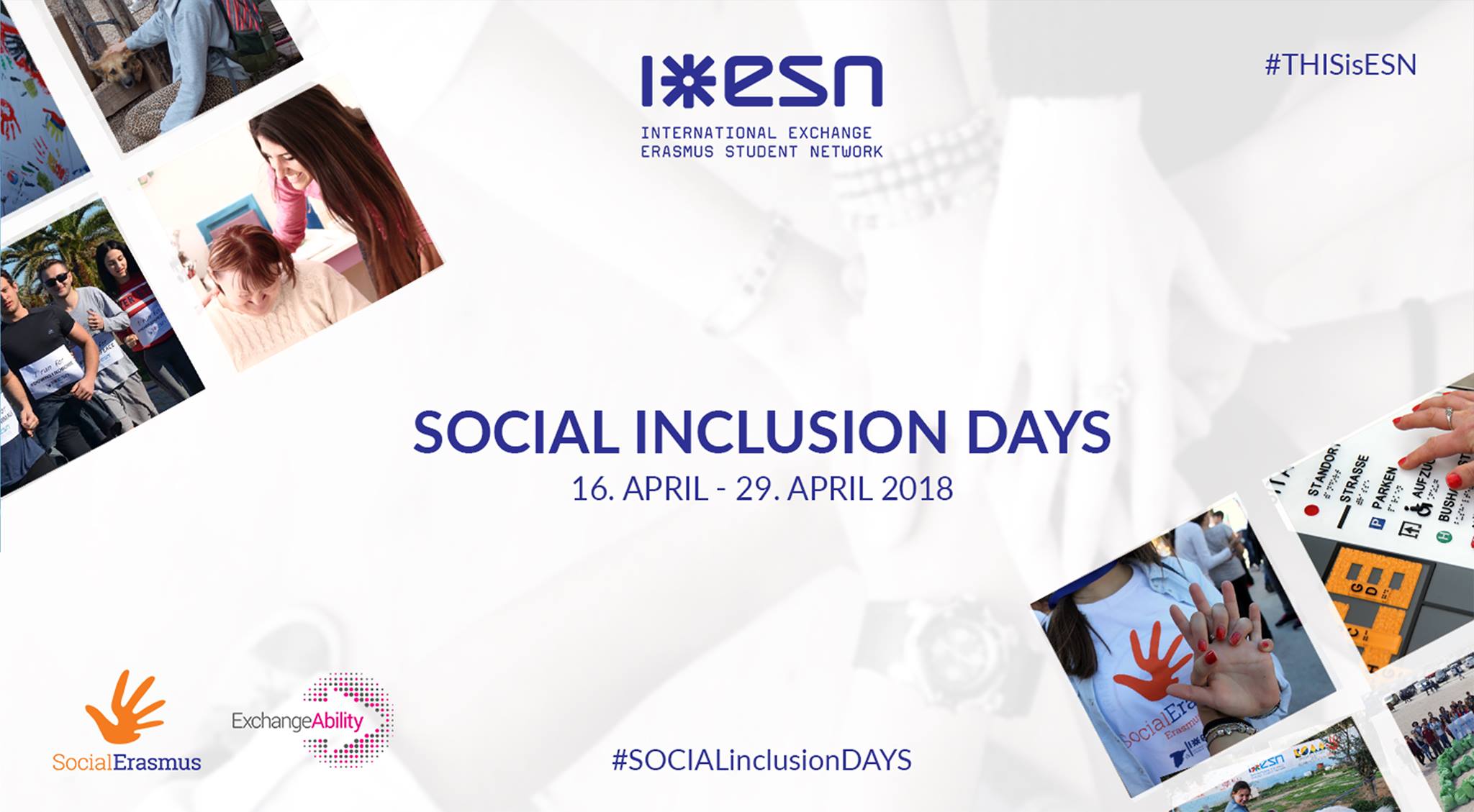 Erasmus Student Network is organising an initiative Social Inclusion Days where more than 500 local associations in 40 countries will host events that raise awareness and take action about volunteering and disability from 16th until 29th of April 2018.